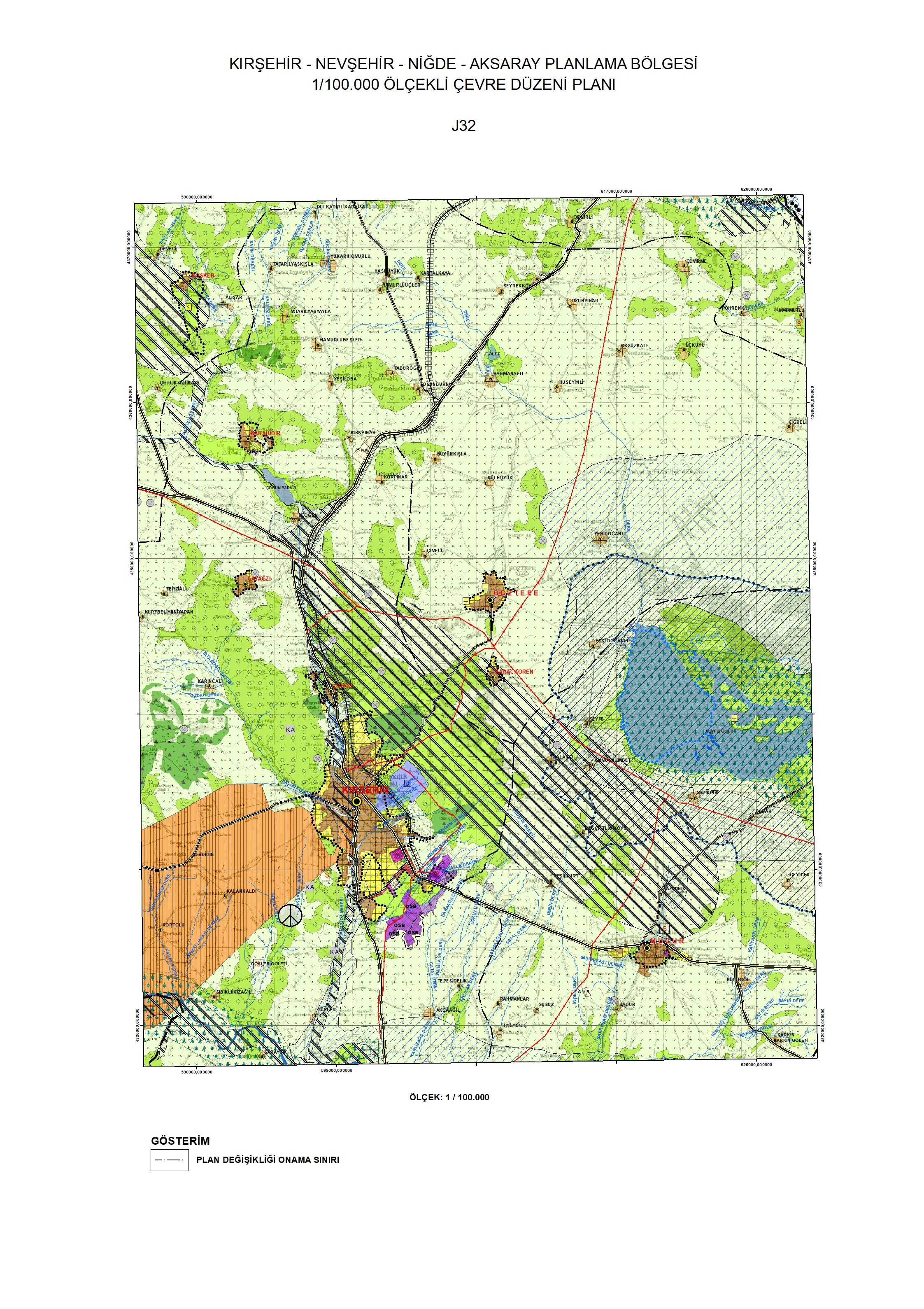 Kırşehir İli, Merkez İlçesi, Akçağıl Köyü ile Bahçelievler Mahallesinde yer alan yaklaşık 85,36 ha büyüklüğündeki alanın; sınırları kesinleşen "Kırşehir Organize Sanayi Bölgesi (OSB) 2. İlave Alan Yeri" olarak gösterilmesi amacıyla “Organize Sanayi Bölgesi” olarak düzenlendiği Kırşehir-Nevşehir-Niğde-Aksaray Planlama Bölgesi 1/100.000 Ölçekli Çevre Düzeni Planı Değişikliği (J32 Plan Paftası, Plan Değişikliği Gerekçe Raporu) 1 No'lu Cumhurbaşkanlığı Kararnamesi'nin 102. Maddesi uyarınca Bakanlık Makamı'nın 23.09.2025 tarihli Olur'u ile onaylanmış olduğu belirtilerek KNA-001107203 Plan İşlem Numaralı Kırşehir-Nevşehir-Niğde-Aksaray Planlama Bölgesi 1/100.000 Ölçekli Çevre Düzeni Planı Değişikliğinin, Mekansal Planlar Yapım Yönetmeliği’nin 33. Maddesi uyarınca askı işlemi için İl Müdürlüğümüze gönderilmiştir. İlgili ÇDP değişikliği 30.09.2025 tarihinde İl Müdürlüğümüz ilan panosunda ve internet sitemiz olan https://kirsehir.csb.gov.tr/ web adresinde 30 (otuz) gün süre ile Kırşehir Valiliği Çevre, Şehircilik ve İklim Değişikliği İl Müdürlüğü’nce askıya çıkarılmıştır. 30.09.2025